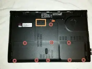 С помощью отвертки выкрутите девять винтов длиной 8 мм в панели на задней стороне ноутбука.