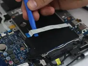 Используйте пластиковый инструмент для вскрытия, чтобы поднять защелку на ZIF-коннекторе.