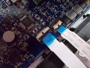 Отключите шлейфы, подняв маленькую клапан на верхней части адаптера, затем вытяните их.