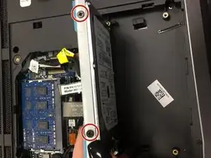 Открутите два винта по 6 мм с нижней стороны ноутбука.