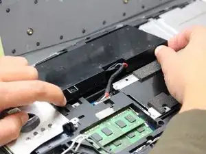 Уберите два винта с крестообразной головкой (5.5 мм), удерживающих батарею на месте.