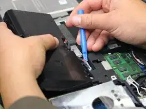 Осторожно используйте пластиковый инструмент для открытия, чтобы отсоединить батарею.
