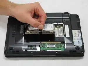 Схватите черный язычок и поднимите, чтобы вынуть жесткий диск из компьютера.