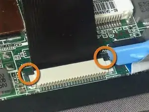 Используйте кончик пластиковой лопатки, чтобы переместить чёрные фиксаторы с обеих сторон белого разъёма вперёд, в сторону дисплея.