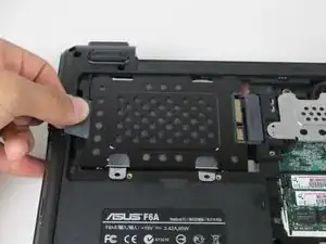 Медленно поднимите направляющую и извлеките жесткий диск из ноутбука.