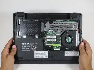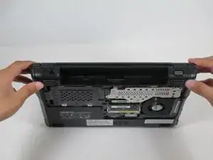 Переверните ноутбук лицом вниз и поверните его так, чтобы отсек с батареей был обращен к вам.