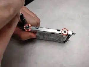 С помощью отвертки JIS #00 отвинтите четыре винта 3 мм, фиксирующие жесткий диск в кожухе.