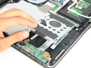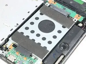 После снятия четырех винтов аккуратно потяните жесткий диск вниз, как показано.