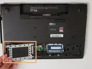 Сдвиньте жесткий диск влево и извлеките его из устройства.