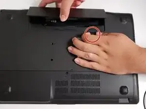 Сдвиньте ползунок в противоположную сторону, одновременно вытаскивая аккумулятор.