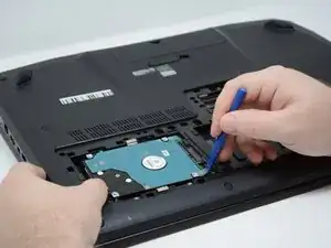 Когда жесткий диск открыт, потяните его от точки соединения, а затем удалите жесткий диск.