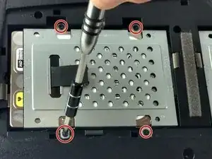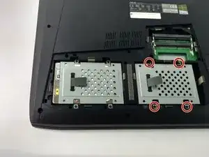 Отверткой Philips удалите четыре винта длиной 2,4 мм, фиксирующие корпус левого жёсткого диска.