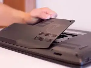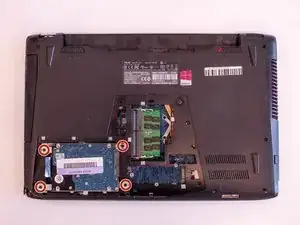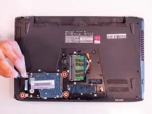 Удалите винты длиной 16 мм и 9 мм на малой крышке на нижней стороне ноутбука с помощью отвертки Phillips #1.