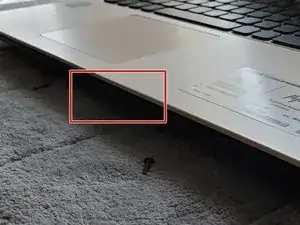 Начните вскрытие с центра ноутбука и двигайтесь по краям, чтобы удалить панель клавиатуры.