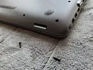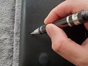 Используйте отвертку Phillips #00, чтобы удалить девять винтов Phillips #00 размером 1.2 мм, прикрепленных к задней панели ноутбука.