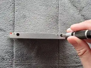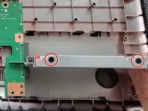 Снимите два винта размером 3 мм, прикрепленные к металлическому каркасу жесткого диска ноутбука, с помощью отвертки Phillips #00.