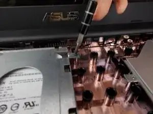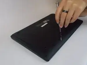 С помощью небольшого вскрывающего или открывающего инструмента подденьте край ноутбука.