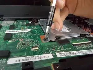 Снимите все винты, удерживающие жесткий диск на месте.