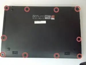 Используйте отвертку Phillips #0, чтобы выкрутить все десять винтов, видимых на задней панели. Всего должно быть десять винтов: (4) четыре винта длиной 5,5 мм и (6) шесть винтов длиной 10,5 мм.