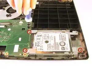 После удаления винтов положите пальцы на левые углы и толкните жесткий диск к правому краю ноутбука (относительно изображения).