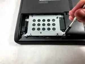 Затем потяните за черную язычок, чтобы вынуть жесткий диск из ноутбука.