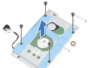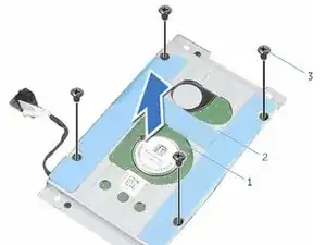 Удалите винты, которые закрепляют кронштейн жесткого диска на узле жесткого диска.