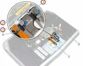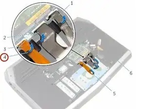 Снимите кабель подсветки клавиатуры, кабель клавиатуры и кабель макроклавиш с направляющих на основании компьютера.