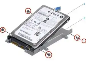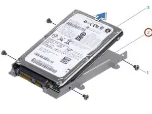 Замените четыре винта, которые крепят кронштейн жесткого диска к жесткому диску.