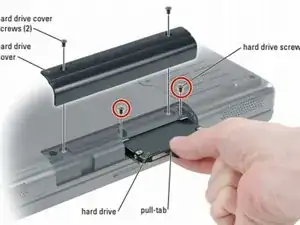 Удалите два винта с жесткого диска.
