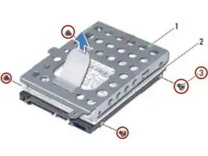 Снимите четыре винта, крепящих кронштейн жесткого диска к самому диску.