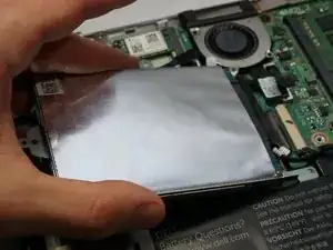 Отогните наклейку, закрывающую первый винт на корпусе жесткого диска.