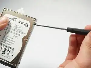 Используя отвертку Philips #1, удалите четыре винта, удерживающих жесткий диск в корпусе.