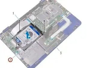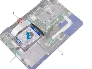 Удалите винт, который крепит сборку жесткого диска к системной плате.