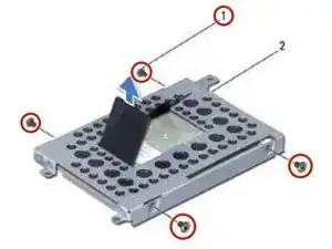 Установите держатель жесткого диска и четыре винта, которые закрепляют НОВЫЙ держатель жесткого диска к жесткому диску.