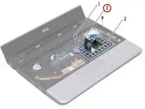 Удалите три винта, закрепляющие сборку жесткого диска к основанию компьютера.