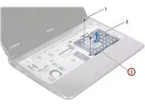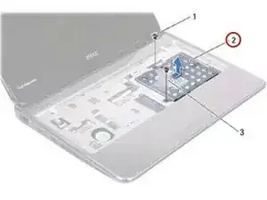 Верните два винта, которыми узел жесткого диска крепится к основанию компьютера.