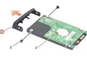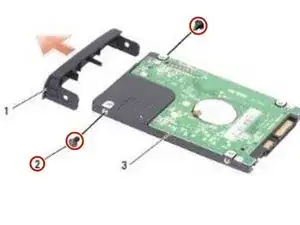 Установите НОВЫЙ жесткий диск в кронштейн и замените два винта M2 x 3 мм по обеим сторонам.