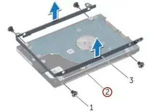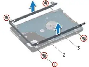 Удалите винты, которые крепят кронштейн жесткого диска к жесткому диску.