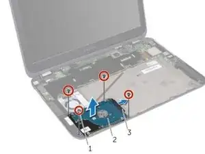 Удалите винты, которые крепят сборку жесткого диска к основанию компьютера.