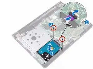 Удалите два винта (M2x3), которые закрепляют блок жесткого диска к блоку под ладонь.