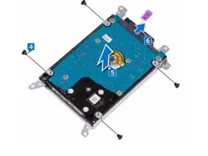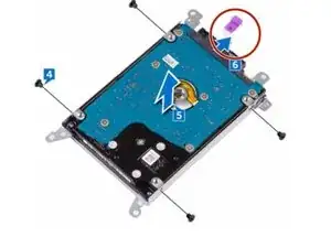 Установите четыре винта (M3x3), которые закрепляют кронштейн жесткого диска к блоку жесткого диска.