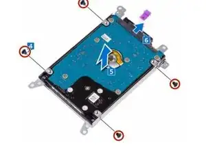 Удалите четыре винта (M3x3), которые закрепляют кронштейн жесткого диска к блоку жесткого диска.