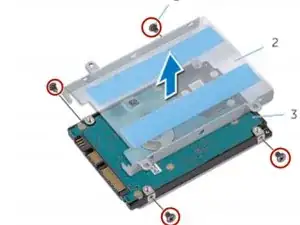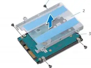 Удалите винты, крепящие кронштейн жесткого диска к жесткому диску.