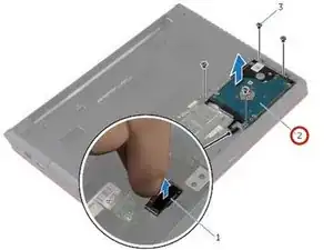 Используя вытягивающую петлю, отсоедините кабель жесткого диска от системной платы.