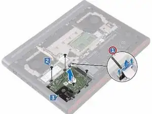 Установите четыре винта (M2.5x3 лестничного типа), которые закрепляют сборку жесткого диска на основании компьютера.
