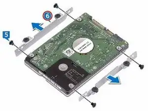 Удалите четыре винта (M3x3), которые закрепляют кронштейн жесткого диска на самом жестком диске.
