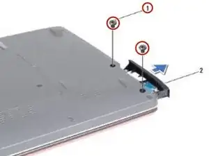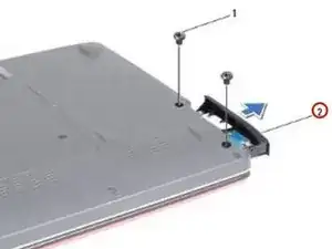 Удалите два винта, которые крепят сборку жесткого диска к основанию компьютера.