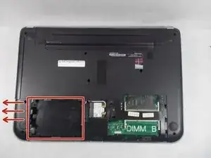 Теперь удалите единственный винт, который крепит жесткий диск к ноутбуку, отмеченный красным кругом.