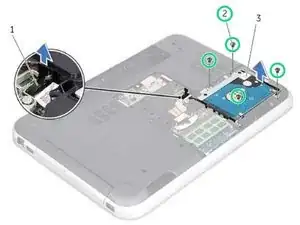 Снимите винты, крепящие узел жесткого диска к основе компьютера.