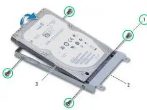 Установите НОВЫЙ жесткий диск в кронштейн и закрутите четыре винта, закрепляющие кронштейн на жестком диске.
